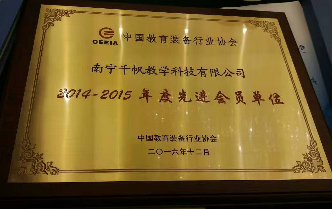 熱烈慶祝南寧千帆教學(xué)科技有限公司在剛剛結(jié)束的中國教育裝備行業(yè)協(xié)會第六次會員代表大會中獲得2014-2015年度先進(jìn)會員單位.